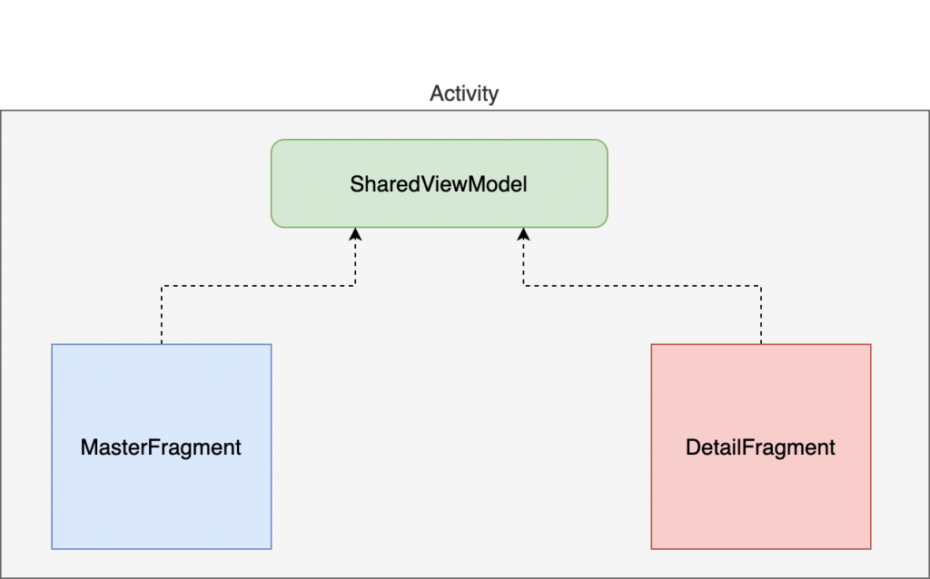 앞의 그림을 살펴보면 SharedViewModel에 두 Fragment가 동시에 접근하고 있다. SharedViewModel을 인스턴스를 얻을 때 ViewModelProvider의 첫번째 생성자 매개변수인 ViewModelStoreOwner를 Fragment들이 속해있는 부모 Activity로 지정하자. 그러면 각 프레그먼트는 동일한 SharedViewModel 인스턴스를 얻게 된다. SharedViewModel의 생명주기는 Activity를 따르게 되고, Fragment의 생명주기는 Activity의 서브셋이므로 Fragment의 생명주기 동안에 자유롭게 데이터를 공유할 수 있게 된다.