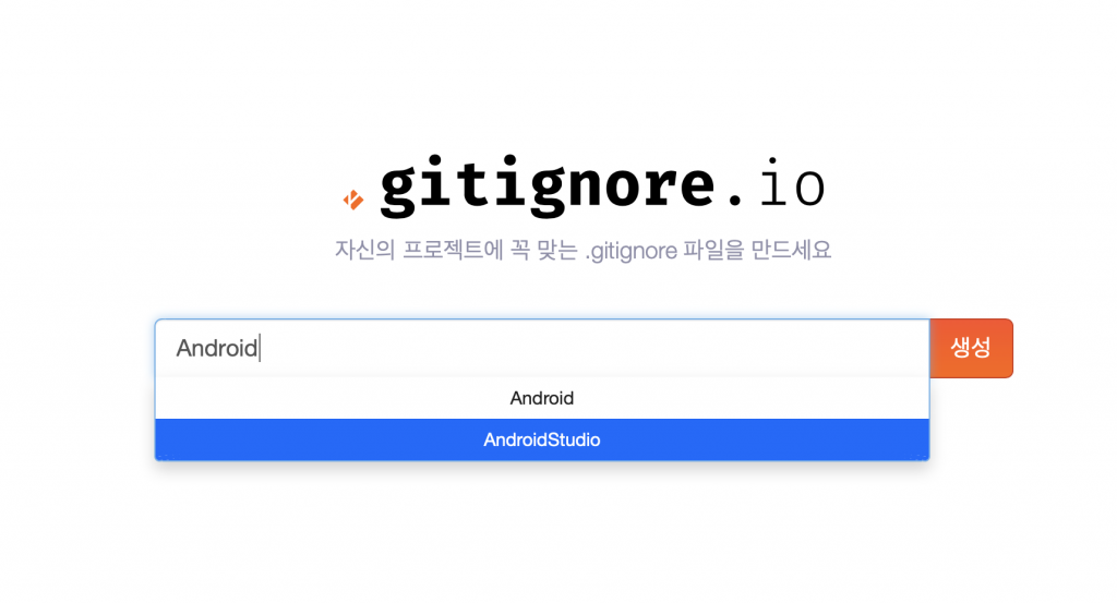 안드로이드 프로젝트를 위한 .gitignore를 만들기위해 AndroidStudio를 입력하여 Create를 눌러보세요. 안드로이드 스튜디오 프로젝트를 위한 무시목록이 자동 생성됩니다.