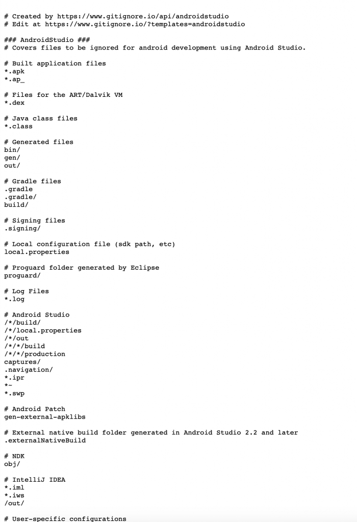 3. gitignore.io 사이트로부터 얻은 무시목록을 복사하여 붙여 넣습니다. 끝!